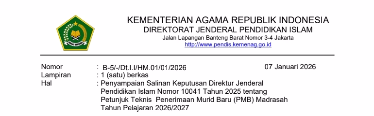 Petunjuk Teknis Penerimaan Murid Baru (PMB) Madrasah Tahun Pelajaran 2026/2027 Dengan hormat, dalam rangka pelaksanaan Penerimaan Murid Baru (PMB) Madrasah…