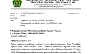 Dalam rangka meningkatkan motivasi, kinerja, dan kesejahteraan Guru Pendidikan Agama Islam pada Sekolah, maka Direktorat Pendidikan Agama Islam akan menyalurkan tunjangan insentif bagi Guru PAI bukan PNS dan bukan PPPK Tahun 2024.